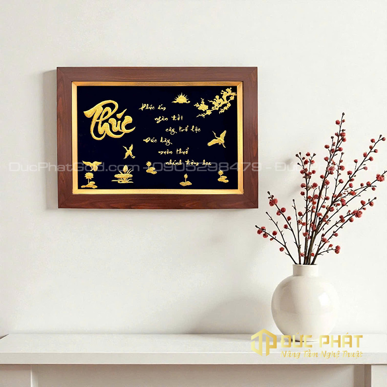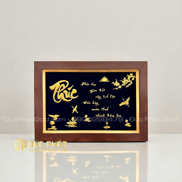 Với vẻ đẹp hài hòa giữa nghệ thuật và phong thủy, tranh chữ Phúc hoa sen và chim hạc là biểu tượng hoàn hảo của phúc – đức – thọ – lộc. Đây là tác phẩm nghệ thuật đẳng cấp, vừa tôn vinh giá trị truyền thống, vừa mang lại năng lượng hạnh phúc và thịnh vượng cho mọi không gian sống. Sản phẩm đang có sẵn tại Đức Phát Gold.