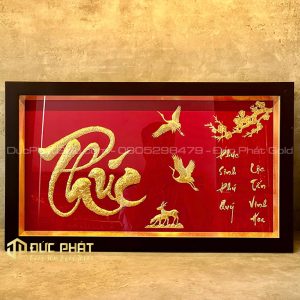 Tranh chữ Phúc và đôi chim Hạc được chế tác thủ công tỉ mỉ trên nền nhung đỏ cao cấp, các chi tiết dát vàng lấp lánh, sang trọng. Khung gỗ được xử lý chống cong vênh, lớp kính trong suốt bảo vệ bức tranh khỏi bụi và ẩm mốc. Mỗi đường nét, hoa văn đều thể hiện tay nghề tinh xảo của nghệ nhân Việt, tạo nên sản phẩm vừa bền đẹp vừa có giá trị lưu giữ kỷ niệm.
