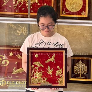 Được chế tác bởi các nghệ nhân tại Đức Phát Gold, bức tranh “Sen Hạc – Phú Quý Trường Xuân” không chỉ là một bức tranh nghệ thuật độc đáo, mà còn là bức tranh biểu tượng giàu ý nghĩa phong thủy, mang đến vượng khí, sự trường thọ và hưng thịnh cho gia chủ.